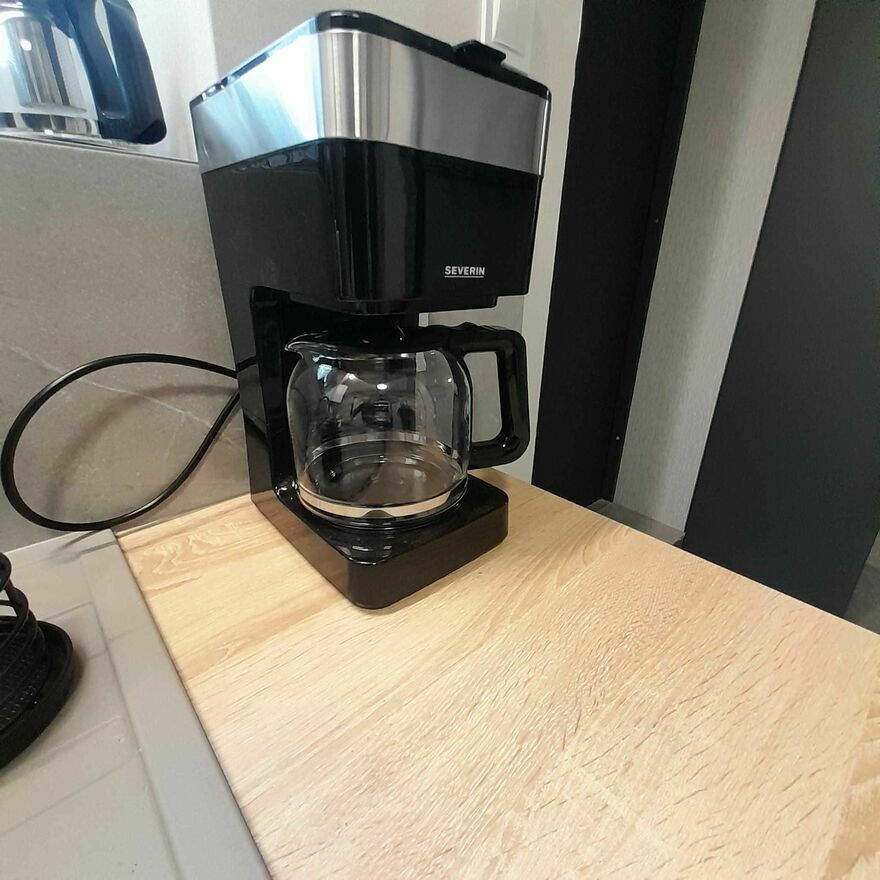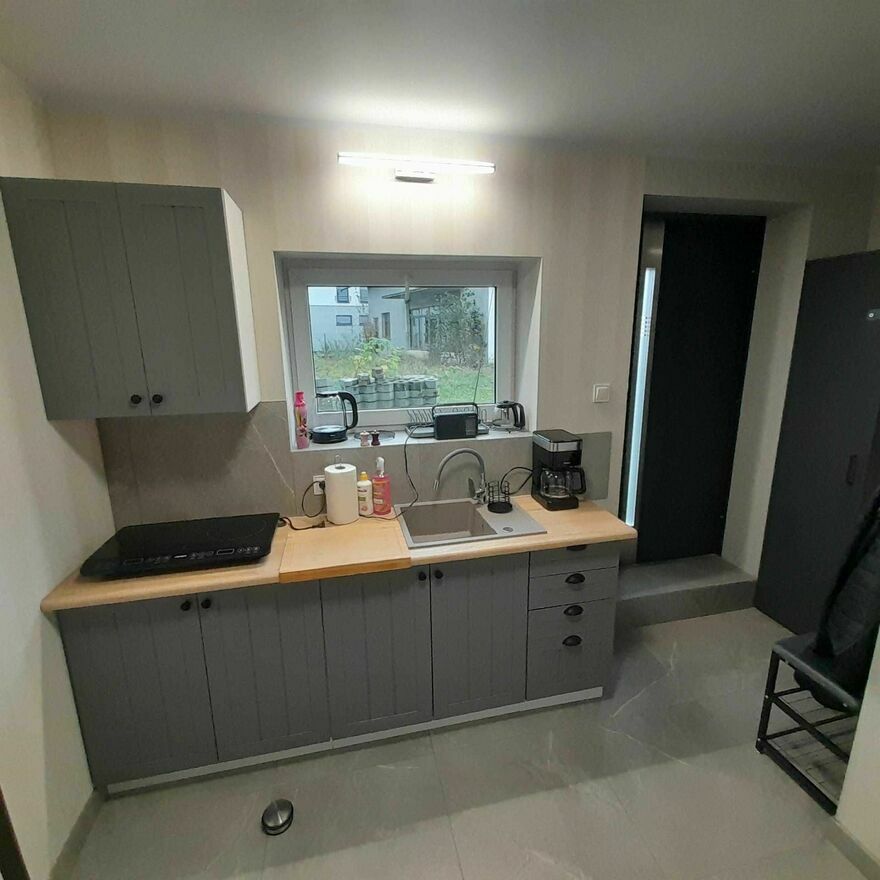 • w pełni wyposażonej kuchni - duża lodówka, ekspres do kawy, płyta indukcyjna, garnki, patelnie, naczynia, szklanki, kubki, filiżanki – wszystko czego potrzeba, jak w domu,