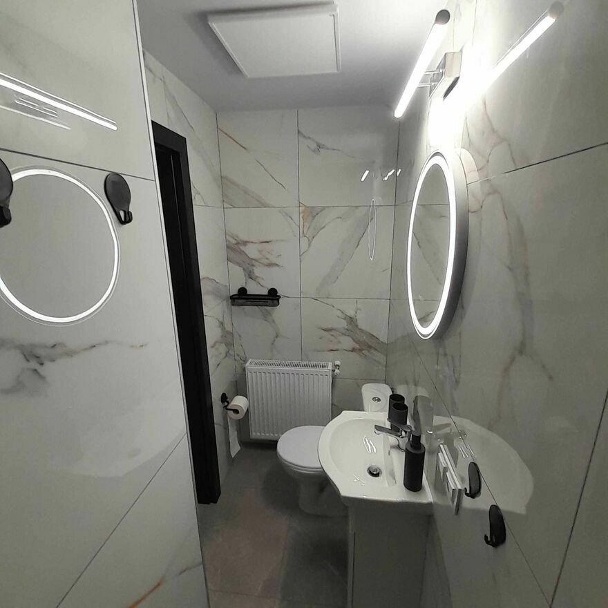 • łazienki z prysznicem – wygodnej, jasnej, z klimatycznym lustrem,