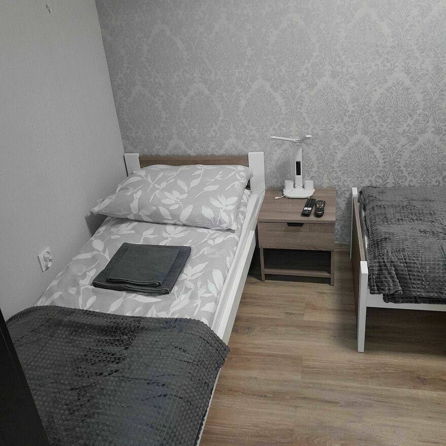 • dwóch pokoi dwuosobowych – w każdym dwa jednoosobowe łóżka (możliwość łączenia łóżek), szafki nocne, szafa, telewizory Smart, dekodery Cyfrowego Polsatu,